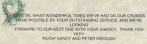 Contact Kerstin's Travel to book your next cruise by sending an e-mail to kerstin@kerstinstravel.com