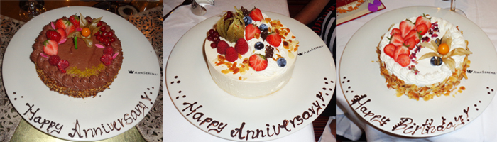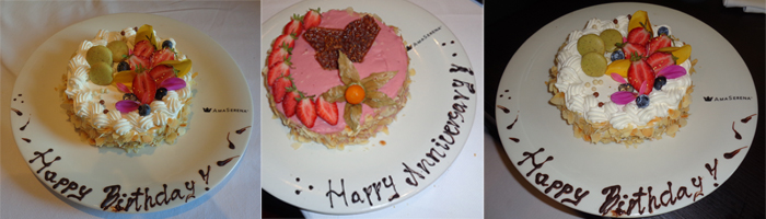 ![]() ![]() Always something to celebrate: a birthday, an anniversary, ... AmaWaterways always makes a special celebration a very personal event and presents beautiful home made cakes. |